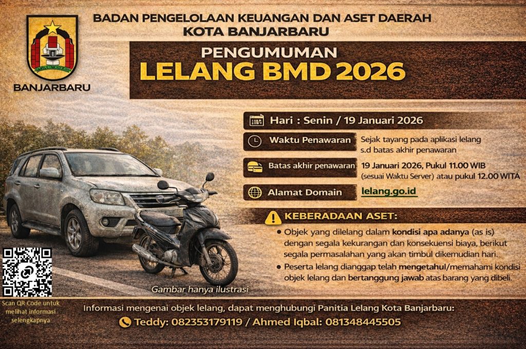 Awal tahun kami bagikan info menarik nih, Ayo ikuti lelang Kendaraan Bermotor Pemerintah Kota Banjarbaru. Lelang telah dibuka hari ini tanggal 13 Januari 2026 dan batas waktu penawaran lelang tanggal 19 Januari 2026 pukul 12.00 Wita